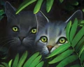 | Distelblatt Distelblatt ist Häherfeders und Löwengluts Schwester, und eine Denkerin. Ihr liegt viel am Gesetz der Krieger, und hat schon einiges versucht, um ihren Clan bestmöglich zu unterstützen. Doch die schwarze Kätzin mit den grünen Augen kommt Geheimnissen ihrer Vergangenheit auf die Schliche, und zerstört damit nicht nur einen Teil der angenommenen Prophezeiung, sondern auch sich selbst. | |